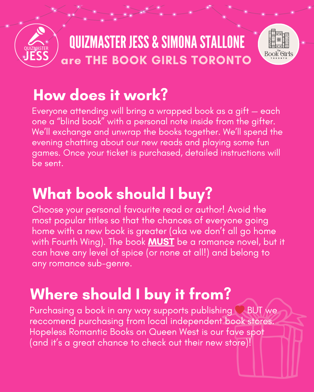 Celebrate the holidays with the Book Girls Toronto (AKA Quizmaster Jess and Simona Stallone)!